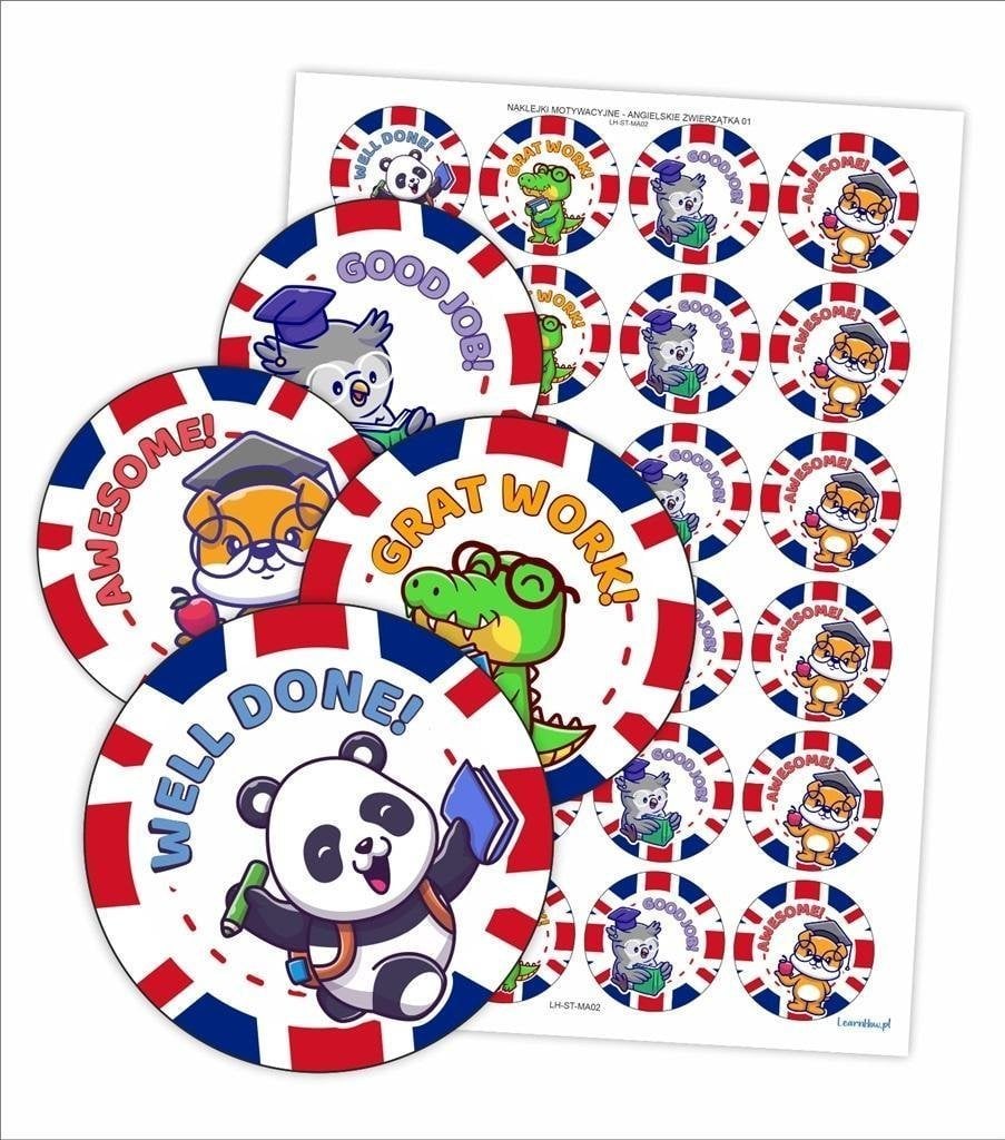 LearnHow Naklejki motywacyjne - Angielskie zwierztka 48szt