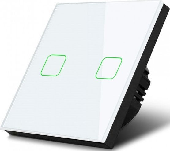 Maclean Dotykowy wcznik wiata, podwójny, szklany, biay z kwadratowym przyciskiem, 86x86mm (MCE703W)