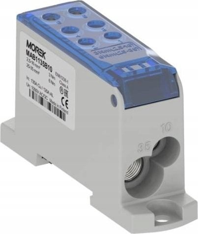 MOREK Blok dystrybucyjny - rozdzielczy OJL135A niebieski AL/CU we:1x2,5-35mm2 /1x2,5-10mm2 wy: 4x2,5-16mm2/2x2,5-10mm2 1000V MAB1135B1
