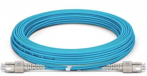 Fibre Optic patch cord SC/UPC-SC/UPC CORNING fibre, OM3, duplex, 3.0mm LSZH Aqua, 5M