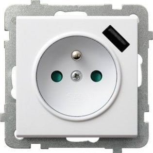 Ospel SONATA Gniazdo pojedyncze z/u z przesonami, z adowark USB biae GP-1RZPUSB/m/00