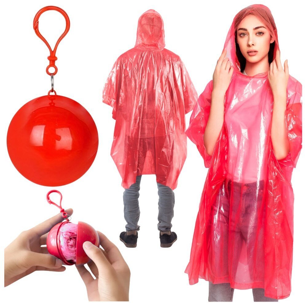 Peleryna Przeciwdeszczowa Paszcz W Kulce Breloku Czerwony