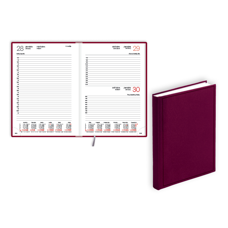 Plānotājs 2026.gadam EKO Manager A5, diena, balacron, bordo