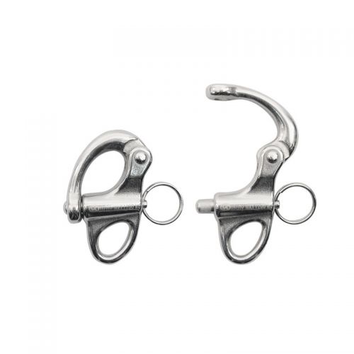 AISI 316 nerūsējošā tērauda Quick Release ātrās atbrīvošanas karabīne, noderīga visās situācijās, kad nepieciešama ātra atvienošana no stiprinājuma punkta (ūdens slēpošana, burāšana u.c.). Pietiek pavilkt gredzenu, lai ātri atvērtu aizvēršanas sviru, pat zem slodzes. Izturība: 2000 kgf (19.6 kN)