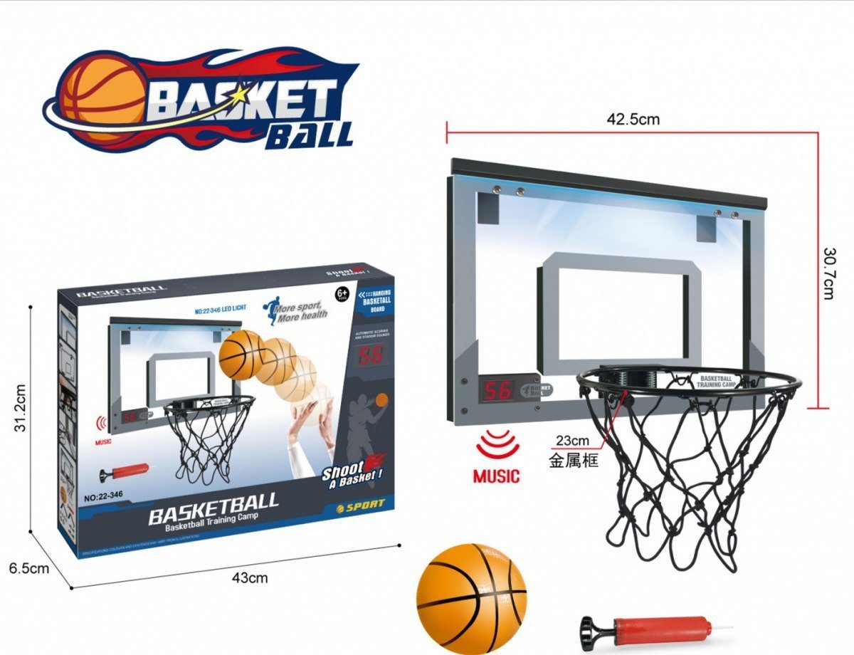 Ramiz Interaktywny zestaw do gry w koszykówk dla dzieci 6+ Tablica z licznikiem + pika + pompka