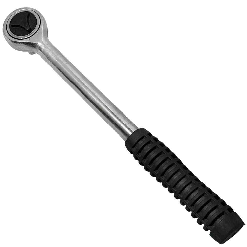 Reversīva atslēga izgatvota no instrumentu tērauda, ar rievotu plastmasas rokturi. Garums 220 mm, 36 zobi.