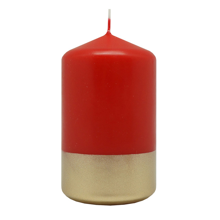 Svece stabs sarkana ar zelta apakšu 5.8x10cm