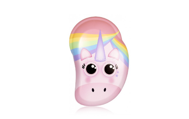 Tangle Teezer The Original Mini Rainbow Unicorn - is a compact detangling hairbrush designed especially for kids or on-the-go use. Its two-tiered flexible teeth gently glide through wet or dry hair, removing knots without pulling or pain. The cute Rainbow Unicorn design makes brushing fun, while the ergonomic shape fits perfectly in small hands or travel bags. Ideal for daily brushing, school, travel, and sensitive scalps. |