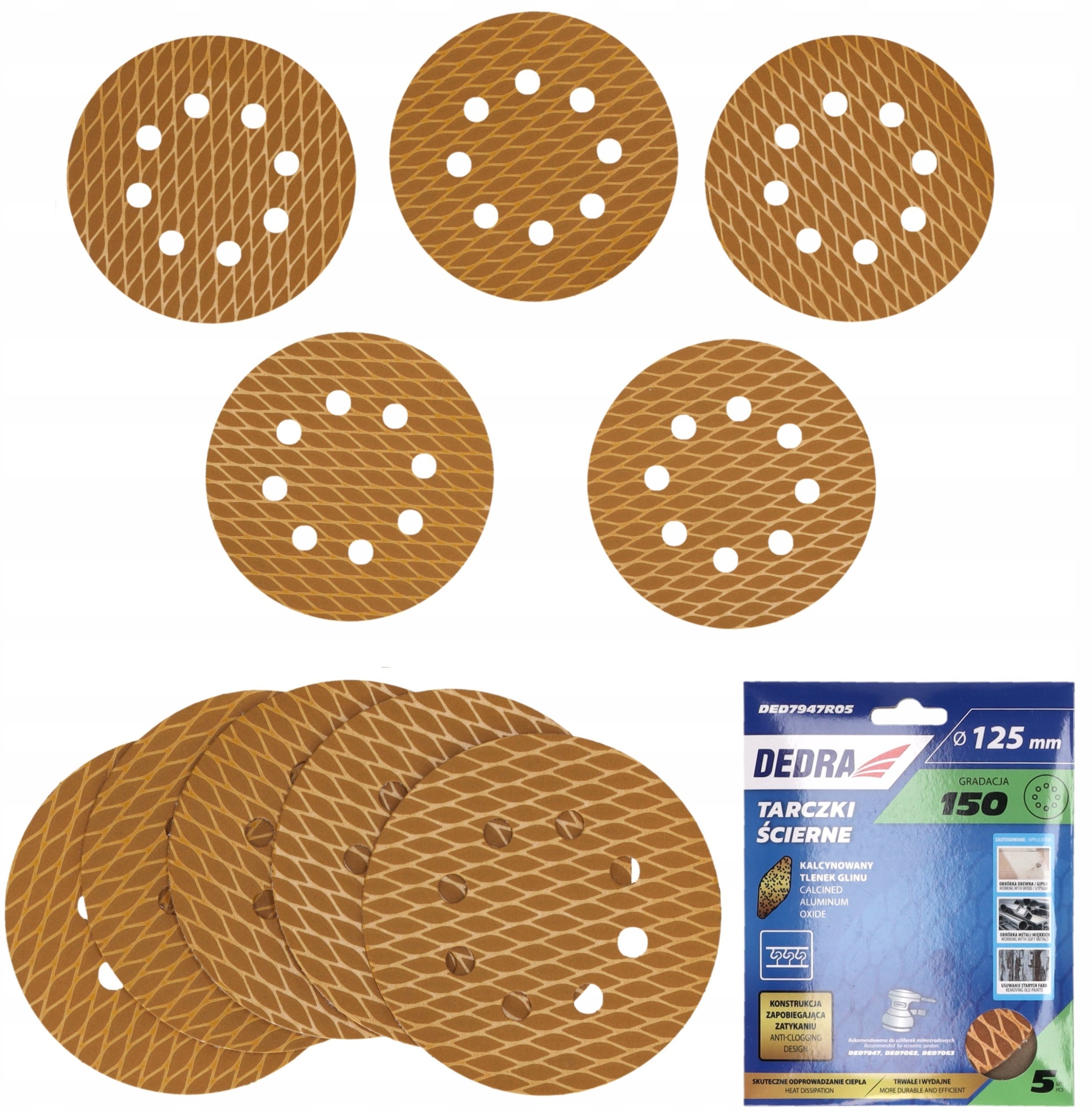 Tarczki cierne Anti-clog 125mm, #150, rzep, zestaw 5szt