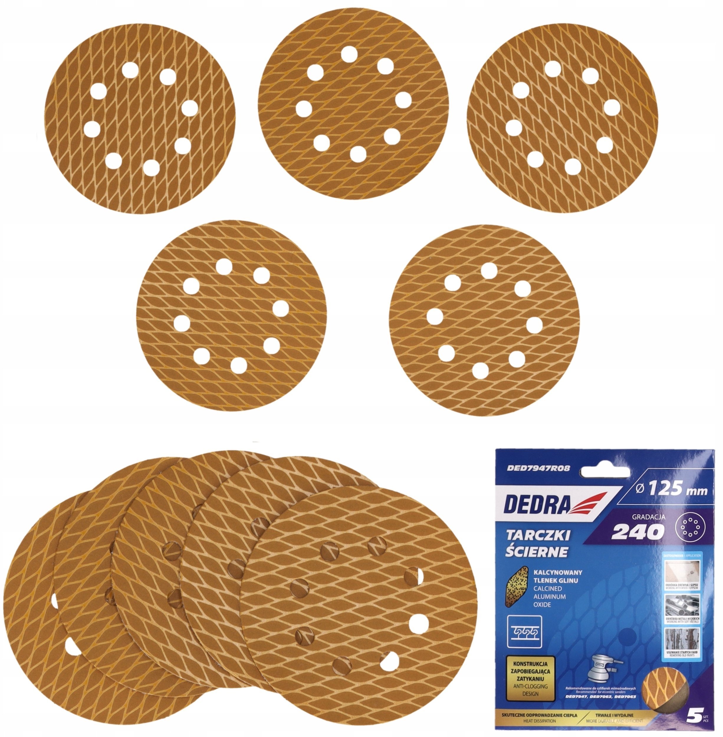 Tarczki cierne Anti-clog 125mm, #240, rzep, zestaw 5szt