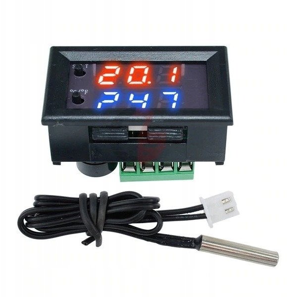Termostatas 12V W2 -50°C iki 110°C - Raudonas-mlynas - su temperatros reguliatoriumi