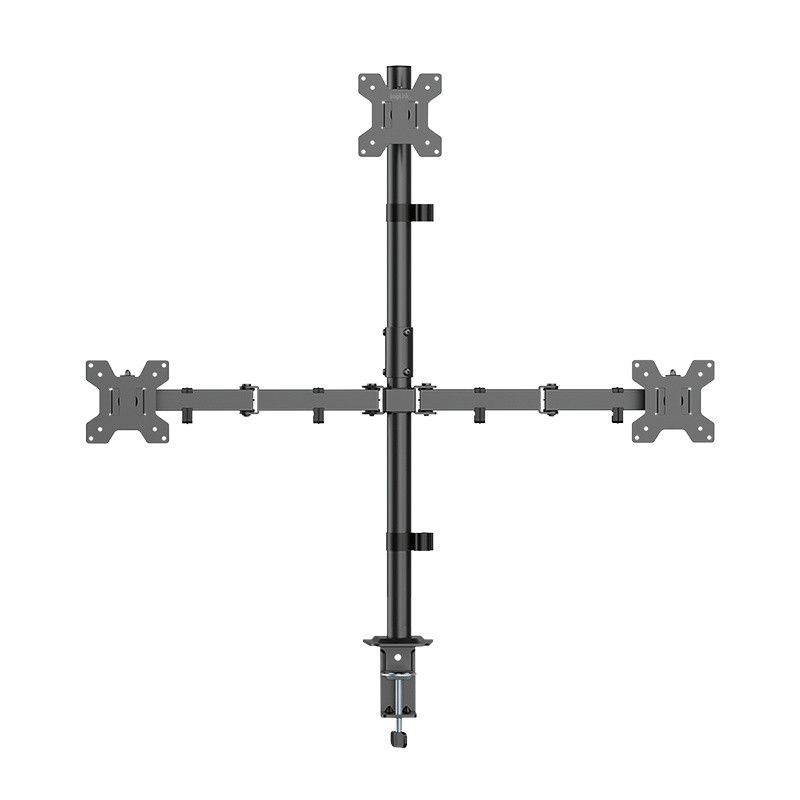 Nasz solidny i wszechstronny uchwyt potrójny do monitora został zaprojektowany, by zoptymalizować Twoje miejsce pracy. Pewnie utrzymuje trzy monitory, redukując chaos i zwiększając produktywność. Wysokość, pochylenie i obrót można łatwo dostosować dla uzyskania indywidualnego doświadczenia oglądania. Solidna konstrukcja zapewnia stabilność, a elegancki design dodaje nowoczesnego akcentu Twojemu biurku. Pożegnaj się z bólem karku i ciesz się bezwysiłkową wielozadaniowością. Udoskonal swoje stanowisko z naszym uchwytem na trzy monitory.