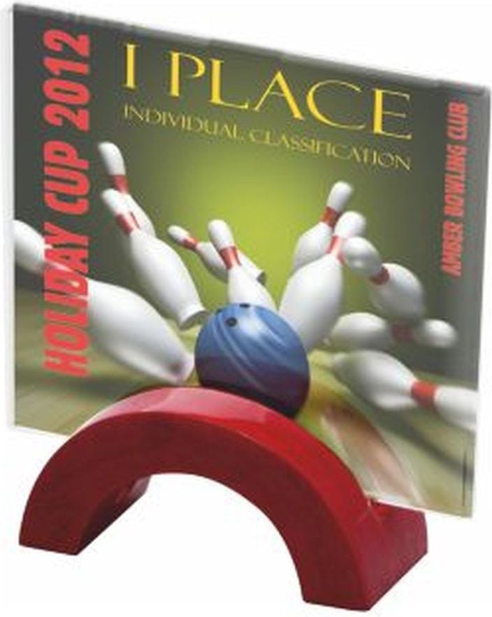 Victoria Sport Trofeum szklane z nadrukiem kolorowym LuxorJet, grawerowaniem oraz wypenieniem farb i etui