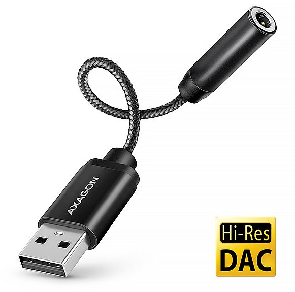 Kabel USB Axagon AXAGON ADA-HA, adapter audio USB-A na jack 3,5 mm Hi-Res DAC, 384 kHz / 32 bit, stereo
