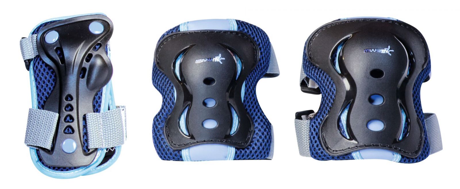 Augstas kvalitātes aizsargu komplekts, kas sastāv no plaukstas, ceļgalu un elkoņu sargiem.
