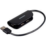 Hub czteroportowy USB 2.0 READY AXAGON HUE-X4B z na stałe przymocowanym kablem USB. Dzięki bezpośredniemu złączu USB na krótkim kablu, jest zawsze w zasięgu ręki. Dwa porty USB umieszczone po bokach hubu do bezproblemowego przyłączenia jakiegokolwiek urządzenia USB o dużym gabarycie wokół złącza. Kompaktowy i lekki koncentrator z na stałe przymocowanym elastycznym kablem USB jest przeto sprytnym pomocnikiem w domu i w podróży. Właściwości: 4x downstream USB 2.0 port, 1x upstream USB 2.0 port ze złączem typu A male przymocowany na 20 cm długim kablu. W pełni kompatybilny z USB 2.0 i wstecznie kompatybilny z USB 1.1. Wsparcie szybkości transmisji 1.5 / 12 / 480 Mb/s (low / full / high speed). Całkowite wsparcie Plug and Play i Hot Plug. Umożliwia połączenie aż 127 urządzeń USB kaskadowo. Zasilanie za pomocą magistrali USB - bus-power tryb (5V - 500mA). Wykrycie i ochrona przed prądem przetężeniowym. Dioda LED do oznajmiania przyłączenia zasilania. Wymiary 78 x 34 x 14 mm, masa 32 g (łącznie kabla USB). Wsparcie OS: MS Windows XP / Vista / 7 / 8 / 8.1 / 10 i nowsze, Windows Server 2003 / 2008 / 2012 / 2016 i nowsze (wspierane wszystkie wersje OS Windows 32- i 64-bitowe), Mac OS X 10.4.x i wyższe, Linux z jądrem 2.6.x i wyższym. Uwag.: Sterowniki są częścią składową wspieranych systemów operacyjnych i zostaną zainstalowane całkowicie automatycznie. Żadne inne sterowniki nie trzeba instalować i nie ma ich też do dyspozycji. |