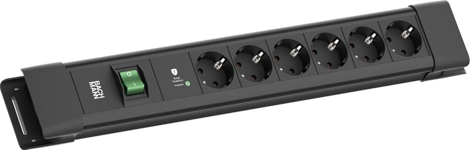 CONNECTUS 6xCEE7/3 1xSPD-Plus 1xSchalter 2,0m CEE7/7 SchwarzCONNECTUS Steckdosenleiste - Kunststoffprofil mit Designendkappen - Inkl. Langloch zur Wandmontage und Befestigungsmöglichkeit für Kabelbinder - 1xSchalter 2-polig - 6xSchutzkontaktsteckdosen, schwarz - 1x Überspannungsschutz-Plus - Schwarzes Profil mit schwarzen Endkappen - Zuleitung 2,0m H05VV-F3G1,5mm², schwarz - mit Schutzkontaktwinkelstecker - verpackt im Polybeutel