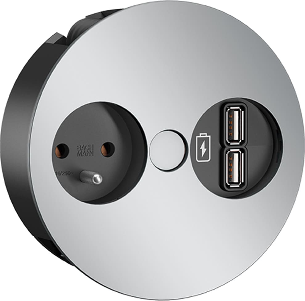 Bachmann TWIST 1xUTE 1xUSB Charger Chrom matt 0,2m GST18, chrom, 0,2 m