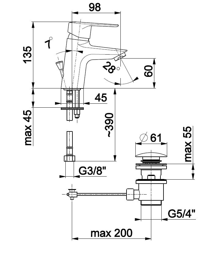 Bateria umywalkowa KFA German stojca chrom (4512-815-00)