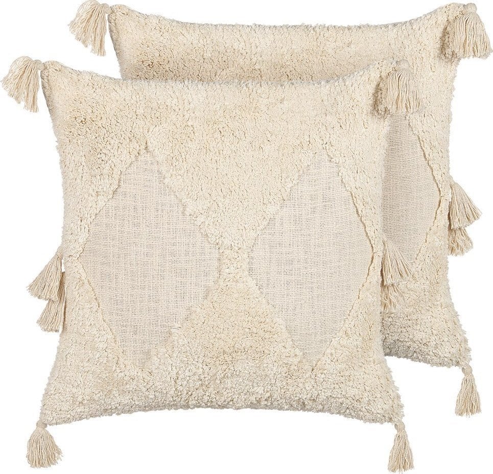 Beliani 2 baweniane poduszki dekoracyjne geometryczny wzór z frdzlami 45 x 45 cm beowe AVIUM!