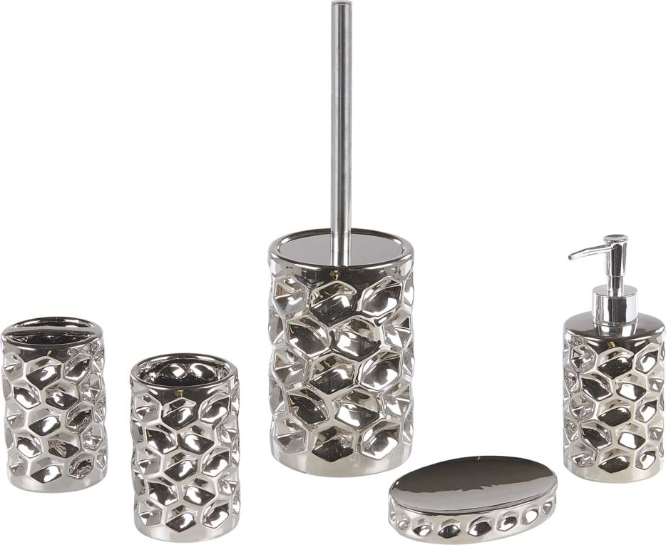 Beliani 5-czciowy zestaw akcesoriów azienkowych srebrny TIRUA