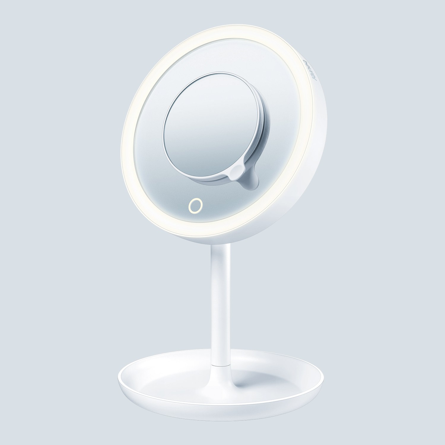 Lusterko kosmetyczne BS 45 firmy Beurer wyróżnia się 28 jasnymi diodami LED, które można bezstopniowo ściemniać. Do nakładania makijażu, golenia czy dla osób noszących soczewki kontaktowe: Małe dodatkowe lusterko z 5-krotnym powiększeniem zapewnia doskonałą widoczność wszystkich szczegółów. U podstawy lusterka do makijażu znajduje się praktyczna tacka, która doskonale nadaje się do przechowywania kosmetyków do makijażu lub biżuterii.