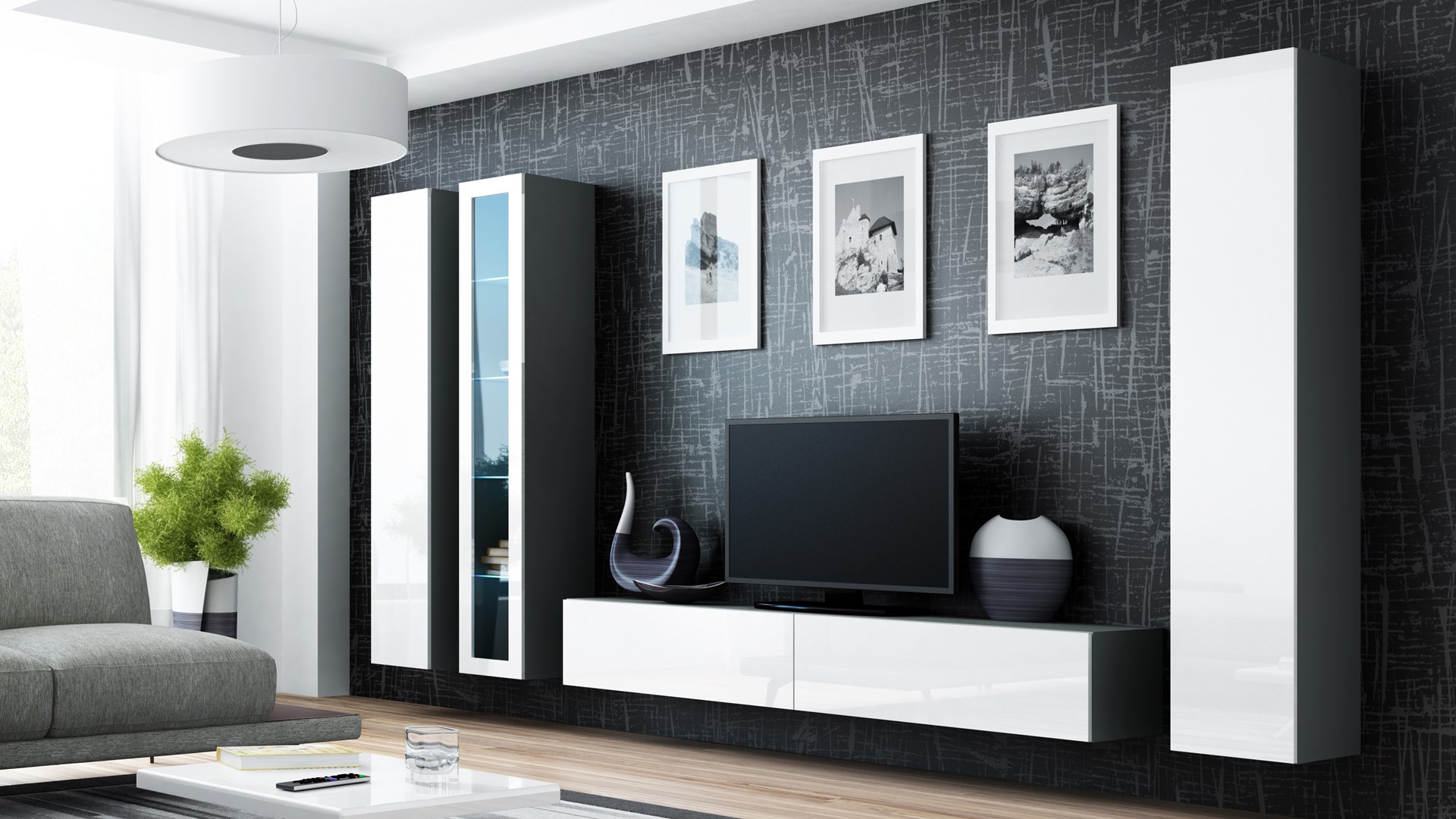 Cama Living room cabinet set VIGO 2 grey/white gloss
