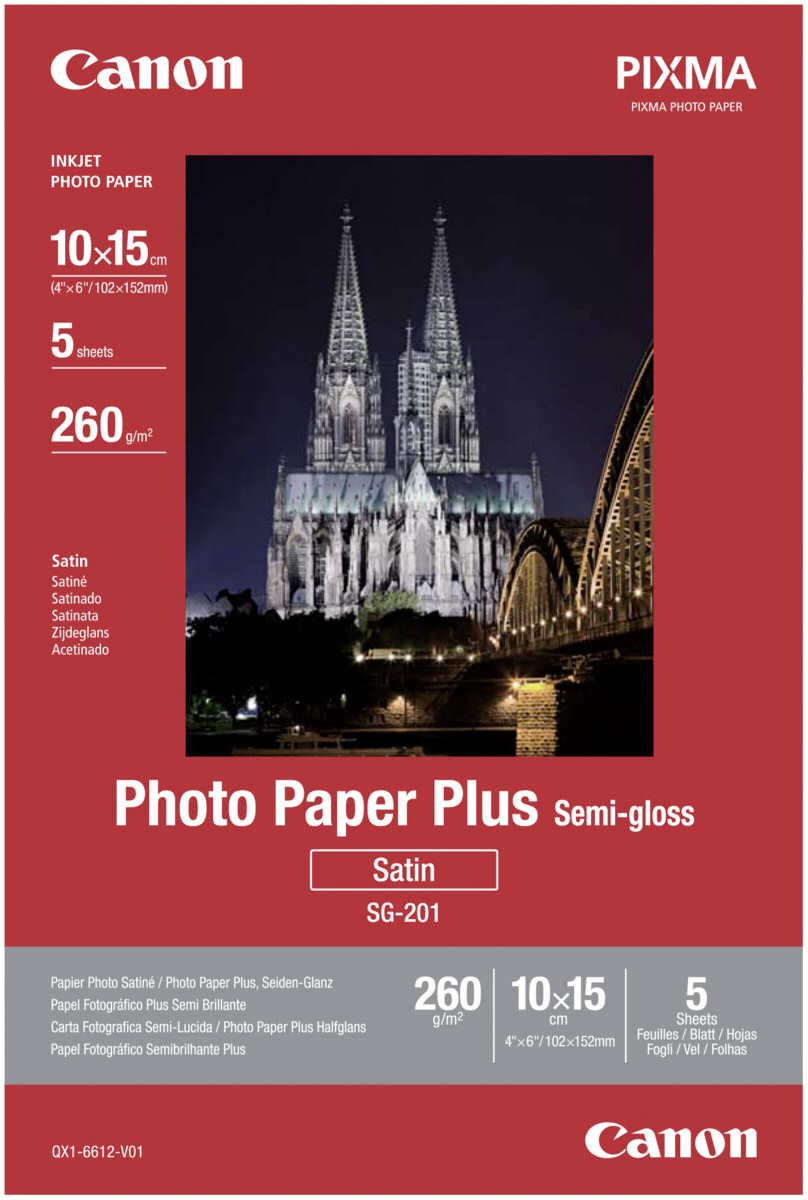 Canon SG-201 Semi-Gloss Photo Paper Plus 10x15cm - 5 Sheets. Sheets per pack: 5 sheets