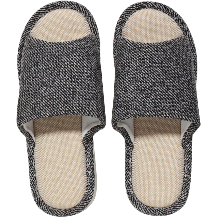 Sieviešu istabas čības tumši pelēkā krāsā ir komfortabls un stilīgs risinājums valkāšanai mājās. Atvērtā purngala dizains nodrošina ventilāciju, padarot tās piemērotas lietošanai visa gada garumā. Mīksta, auduma pārklāta virsma un elastīga zole sniedz papildu ērtumu ikdienas soļos pa māju. Neitrālais tonis un vienkāršais raksts viegli saskaņojams ar dažādiem mājas tērpiem. Izmērs 38 / 39.