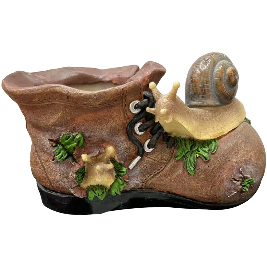 | Dārza dekors gliemezis uz zābaka ir oriģināls un košs akcents dārza vai balkona noformējumam, kas piešķir videi rotaļīgu noskaņu. Izgatavots no izturīgas sveķu masas, tas ir piemērots izvietošanai ārpus telpām, nezaudējot savu izskatu lietū vai saulē. Dekora forma veidota kā vecs zābaks ar gliemezi un tam ir neliels padziļinājums, ko var izmantot kā mini puķupodu vai dekoratīvu trauku. Lieliski piemērots zāliena, terases vai ieejas zonas izrotāšanai. Izmērs 21 x 9 x 11 cm. |