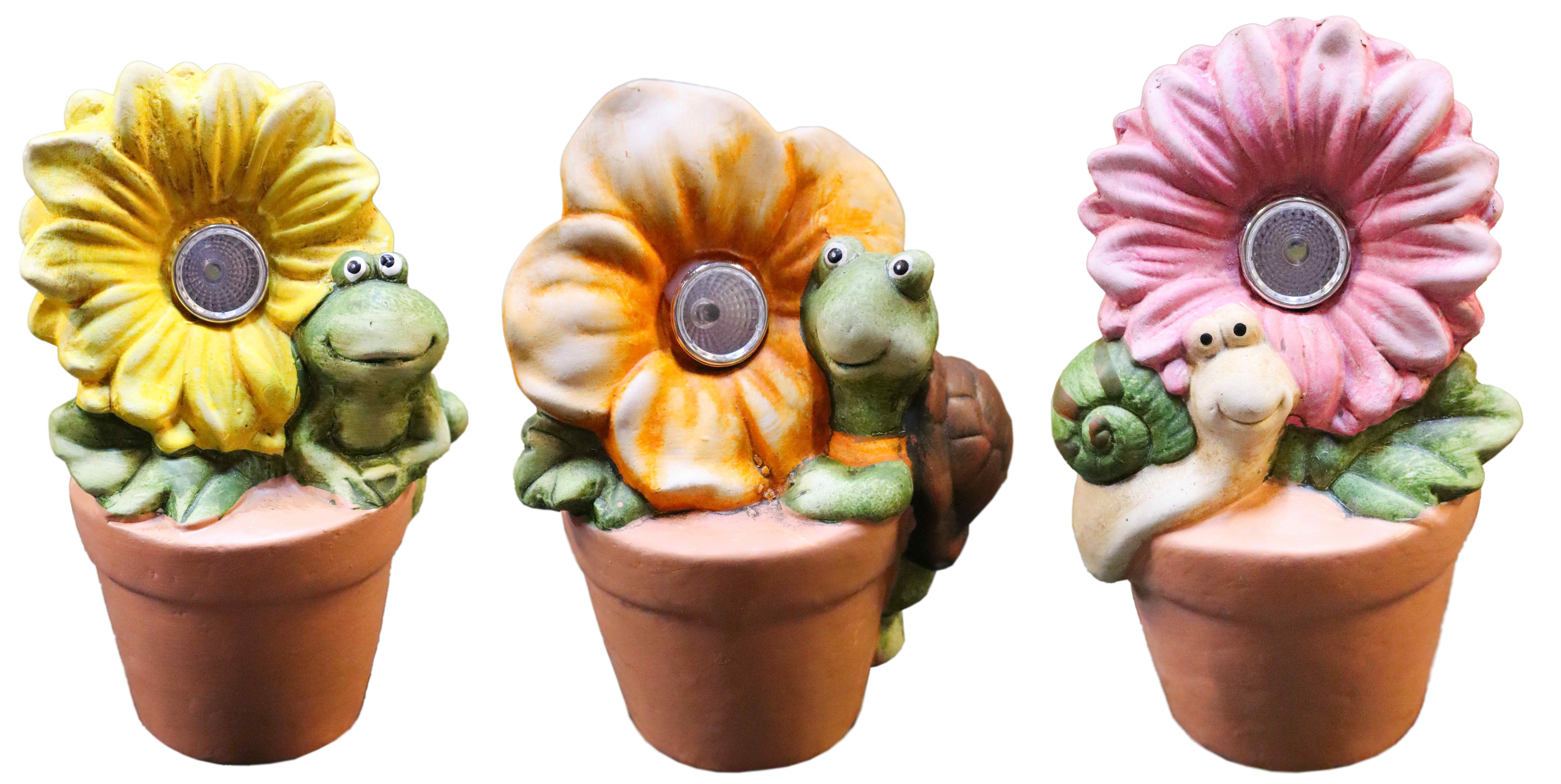 Dārza dekors Puķu pods ar dzīvnieciņu, ar solāro g