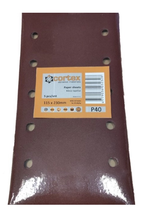 Daudzfunkcionālajām orbitālajām slīpmašīnām paredzētā smilšpapīra loksnes Cortex 31421; 115x230 mm; P180; 5 gab.
