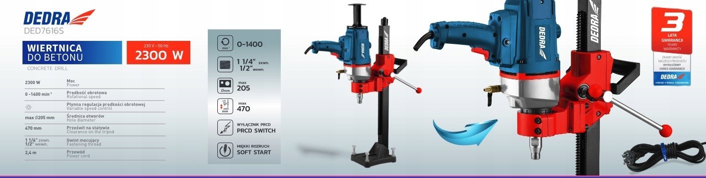 Dedra Wiertnica do betonu statyw r. max 205mm 2300W