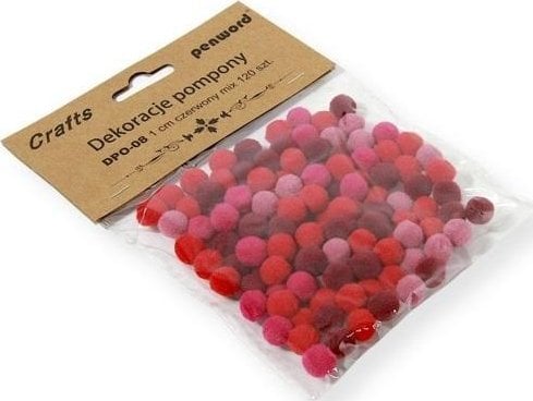 Dekoracje pompony 1cm mix czerwony 120szt