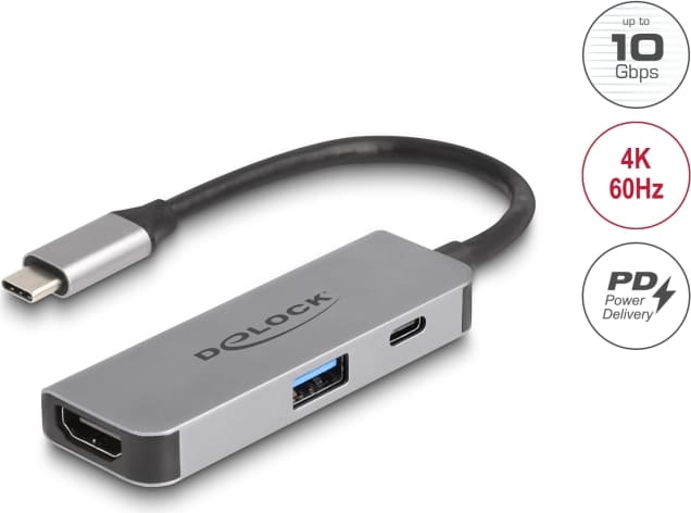 Delock USB Type-C™ Adapter to HDMI 4K 60 Hz with USB Type-A and USB Type-C™ PD 95 W
