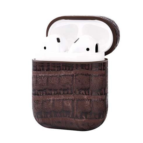 Protective case for AirPods 1 by Devia from the Lux series. Offering full protection against hazards. Magnetic system. Crocodile effect eco-leather covering. Integrated carabiner. Made to measure. Compatible with Qi wireless charging.