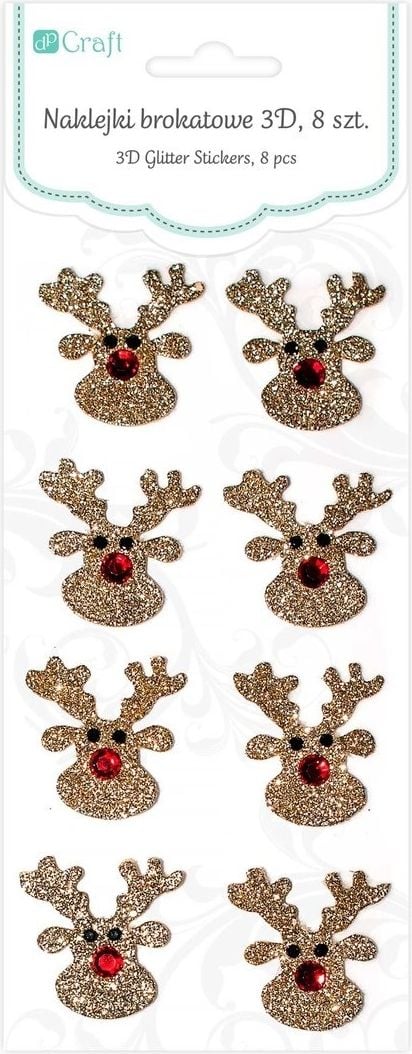 DP Craft Naklejki brokatowe 3D - renifery, 8 szt. (DPNB-008)