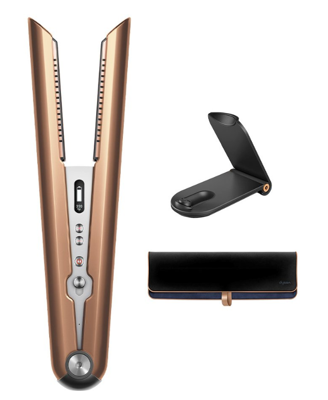 The Dyson Corrale™ straightener uses three main technologies: movable plates, intelligent heating control and a 4-cell lithium-ion battery for unhindered hair styling without a cord.