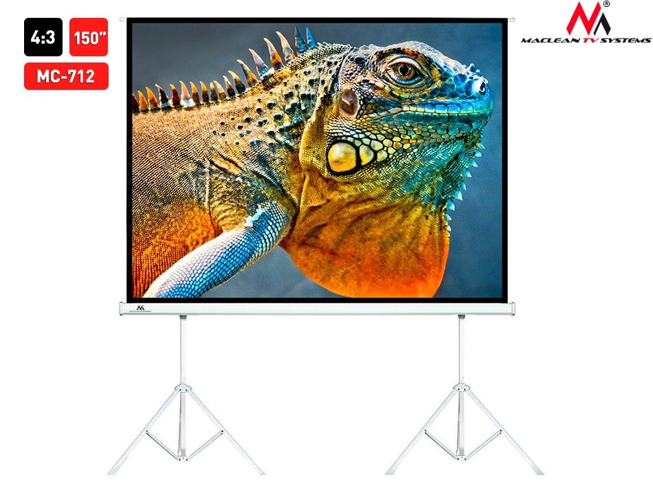 Ekrany przenośne Maclean zapewniają pełną mobilność oraz wysoki komfort prowadzenia prezentacji. Nowoczesna powierzchnia projekcyjna - Matt White zapewnia idealny obraz wyświetlanych filmów i zdjęć.