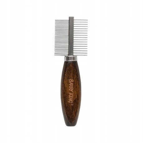 Ekskluzywny grzebie dwustronny, dla zwierzt, z metalow nasad, drewno bukowe, wym.3,8x12,6cm