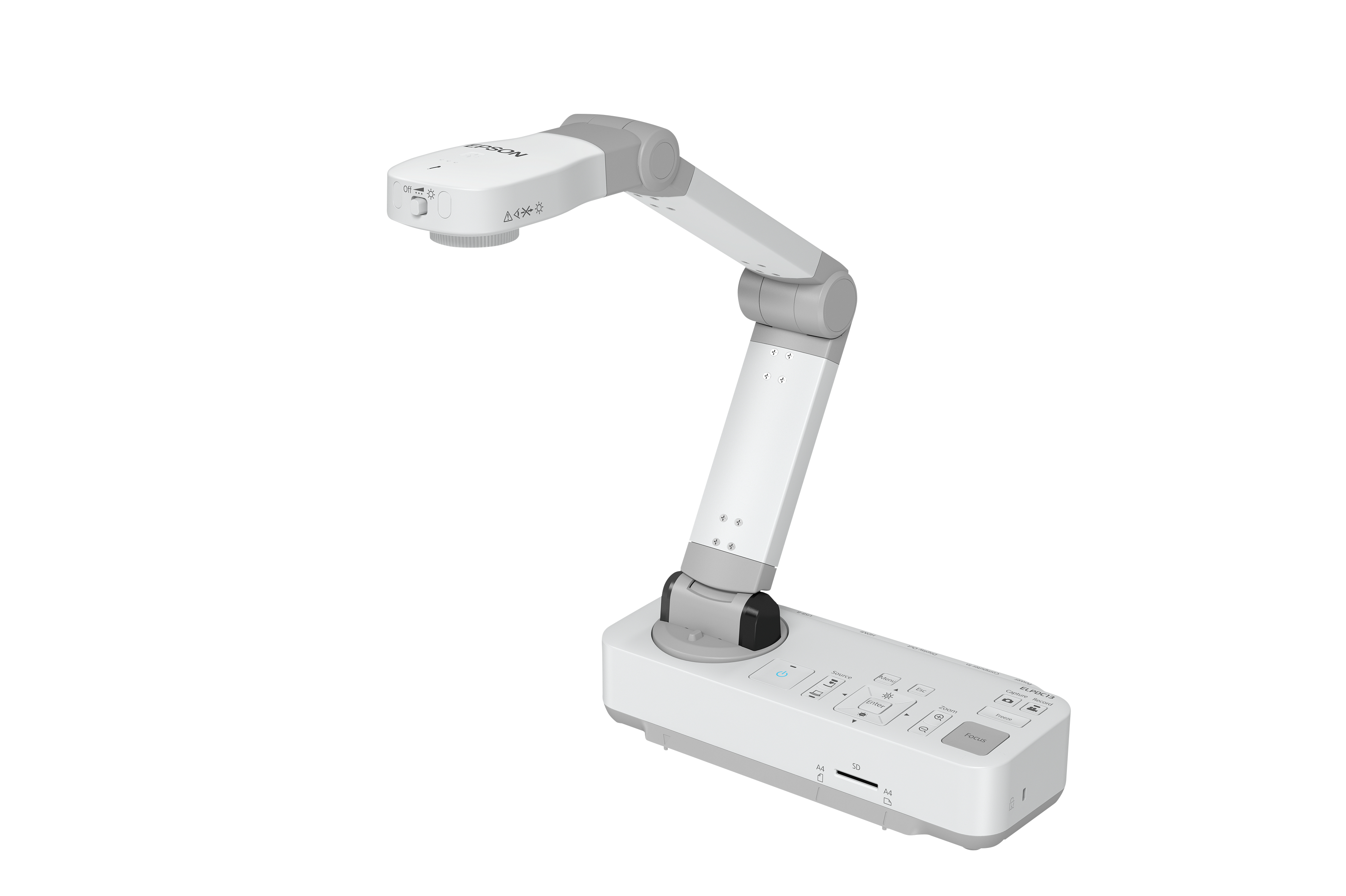 | Epson ELPDC13. Optical sensor size: 25.4 / 2.7 mm (1 / 2.7"), Sensor type: CMOS, Supported graphics resolutions: 1920 x 1080 (HD 1080). Digital zoom: 16x, Shooting area (WxD): 297 x 420 mm. Interface: USB 1.1, USB connector type: USB Type-B. Compatible memory cards: SD, Maximum memory card size: 32 GB. Power supply type: AC, Power consumption (typical): 13 W, Power consumption (standby): 0.5 W |