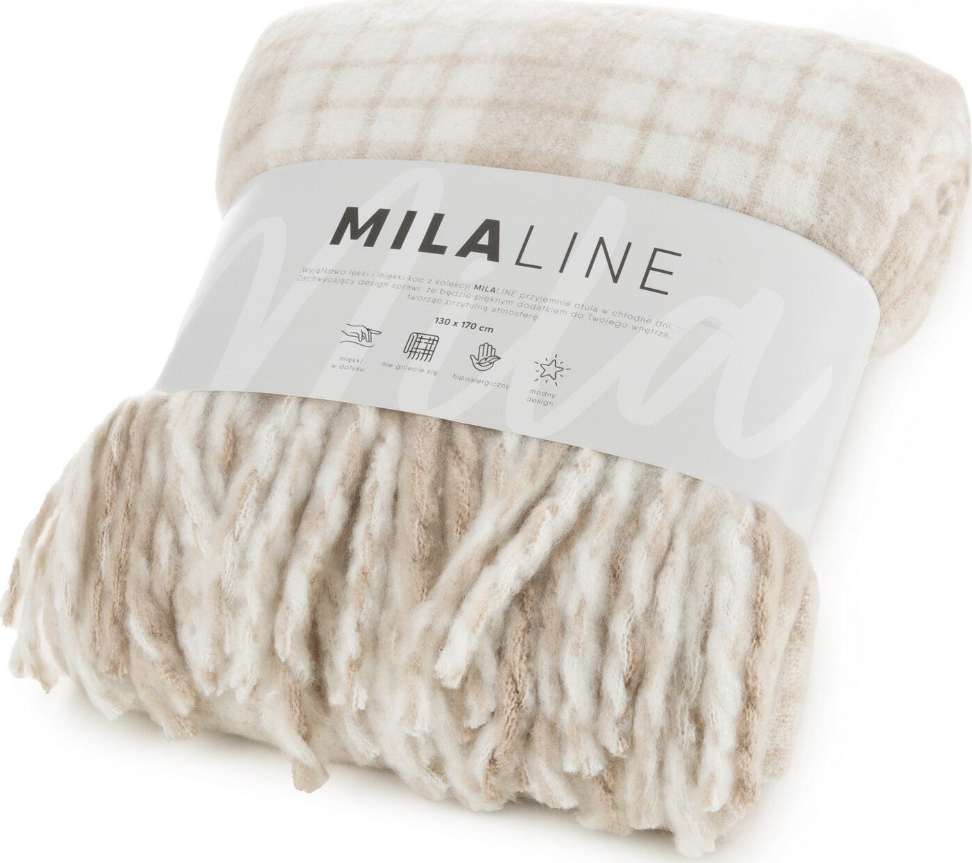 Eurofirany Koc na fotel moherowy z frdzlami 130X170 beowy