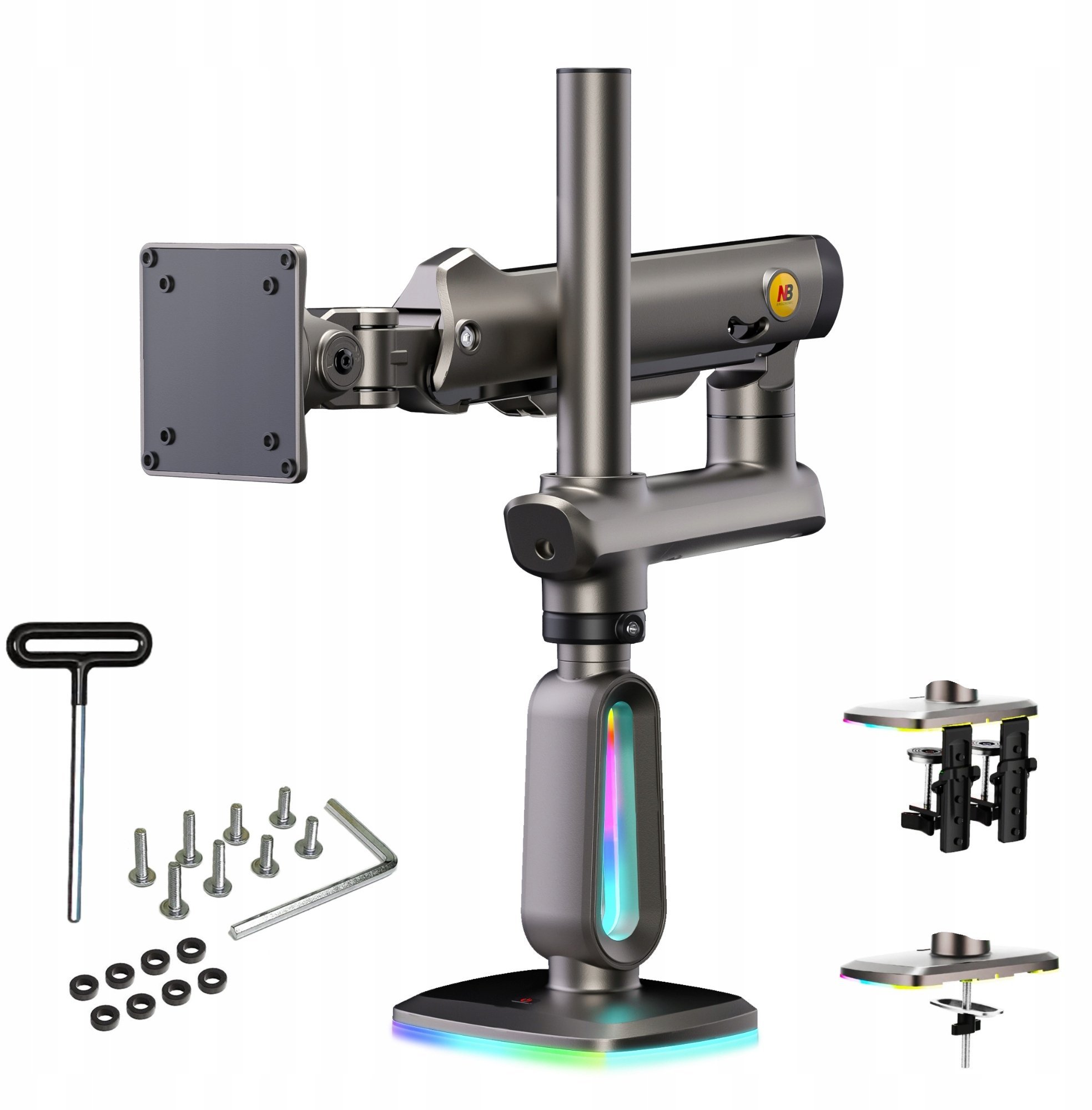 F7-G Podwietlenie RGB Gamingowy mocny uchwyt biurkowy do duych monitorów 32-60 cali