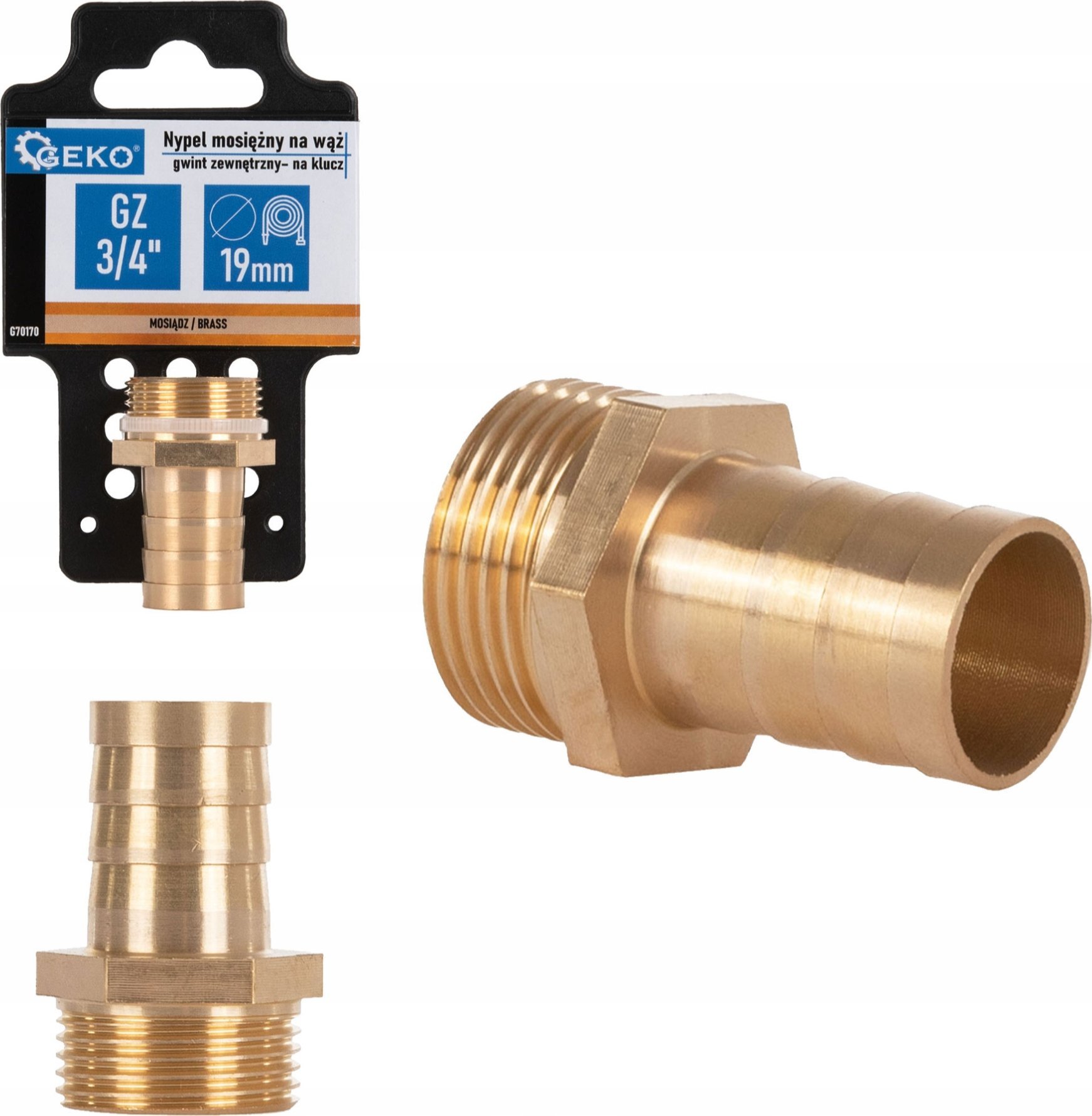 Geko Nypel mosiny na w 19mm gwint zewntrzny 3/4" na klucz (250)