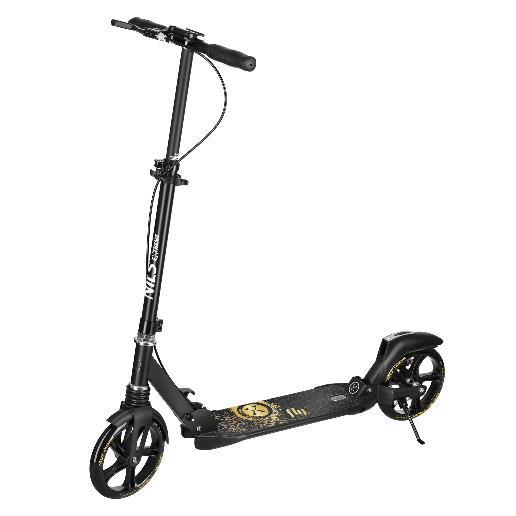 | HM800 FLY GOLD NILS EXTREME ir atpūtas skrejritenis, kas paredzēts bērniem un pusaudžiem, kuri meklē stabilu, ērtu braukšanu apvienojumā ar izcilu stilu. FLY sērija apvieno mūsdienīgu dizainu ar funkcionāliem risinājumiem, nodrošinot patīkamu braukšanu pa dažādām virsmām.