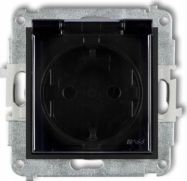 Karlik Gniazdo bryzgoszczelne Karlik Mini 12MGPB-1sdp z uziemieniem SCHUKO 2P+Z klapka dymna, przesony torów prdowych czarny mat