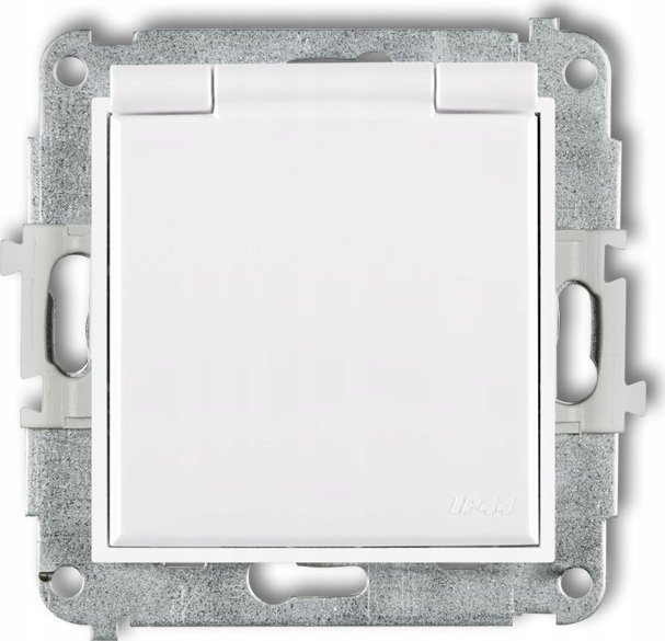 Karlik Gniazdo bryzgoszczelne Karlik Mini MGPB-1sp z uziemieniem SCHUKO 2P+Z klapka biaa, przesony torów prdowych biay