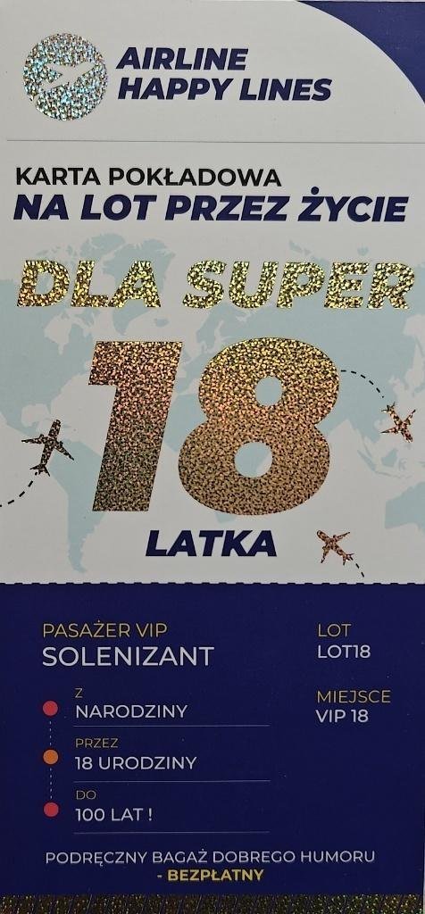 Karnet karta pokadowa 18 urodziny mskie
