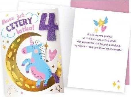 KUKARTKA Karnet Urodziny 4 jednoroec