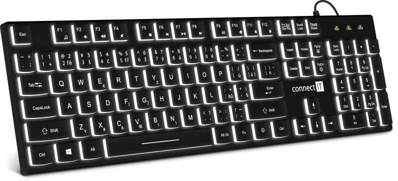 Klawiatura Connect IT CONNECT IT kanceláská podsvícená klávesnice Chocolate WhiteStar, CZ + SK verze, erná
